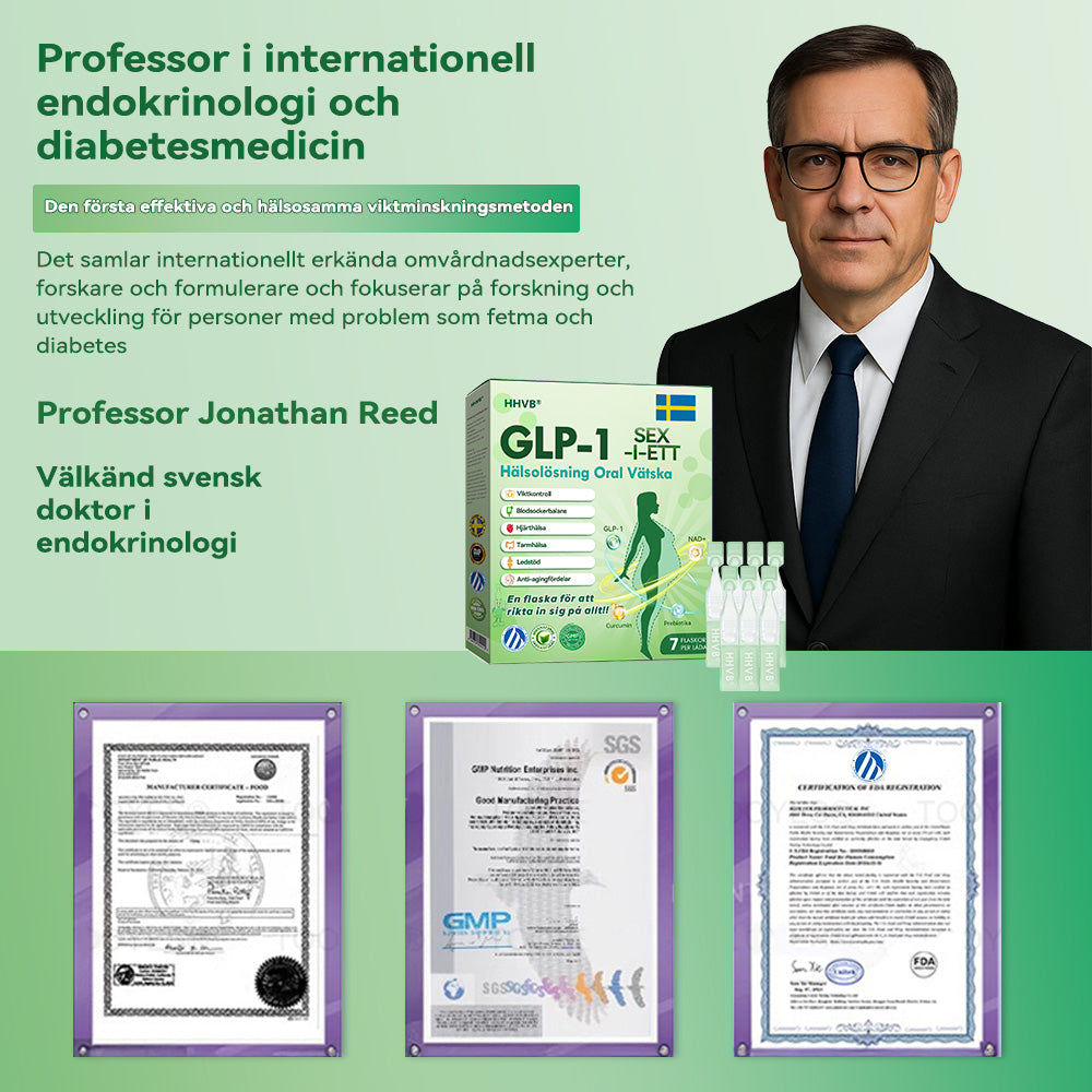 "Som endokrinolog Àr jag engagerad i att hitta effektiva och naturliga lösningar för metabol hÀlsa och viktkontroll. Efter omfattande forskning och kliniska studier med över 5 000 deltagare har jag funnit att SIX-I-ETT HÀlsolösning Oral VÀtska erbjuder anmÀrkningsvÀrda fördelar för ÀmnesomsÀttning, aptitkontroll och allmÀnt vÀlbefinnande. Denna formula stödjer naturligt GLP-1-aktivering, hjÀlper till att reglera blodsockernivÄer, minska sug och förbÀttra fettförbrÀnningen. Dess kraftfulla blandning av ÀppelcidervinÀger, gurkmeja och andra naturliga ingredienser bidrar inte bara till en hÀlsosam viktminskning utan frÀmjar ocksÄ matsmÀltningshÀlsa, stÀrker immunförsvaret och stödjer lÄngsiktig metabol balans. Med stöd frÄn modern medicinsk forskning Àr SIX-IN-ONE HÀlsolösning Oral VÀtska ett pÄlitligt och vetenskapsbaserat val för dem som söker ett naturligt och effektivt sÀtt att hantera vikten och förbÀttra den allmÀnna hÀlsan."